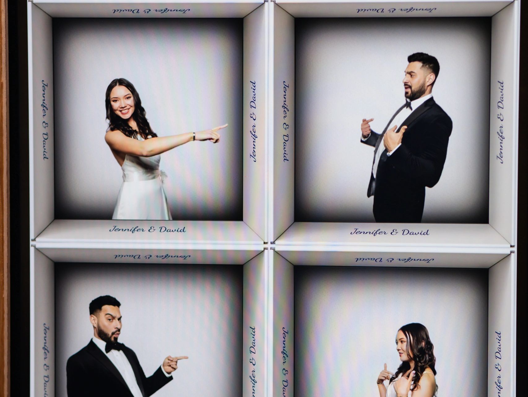 The Box-You Booth is a creative and playful photo booth concept where guests pose inside a box, creating unique and visually engaging collages. It’s perfect for weddings,, offering a fun twist on traditional photo booths.